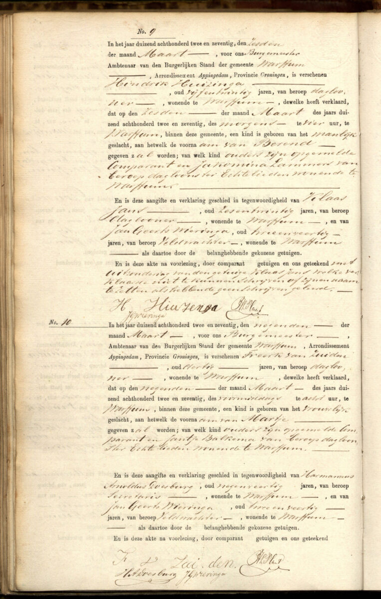 “Geboorteakte,” 09-03-1872, Gemeente Warffum, Periode 1872, Geboorteregister 1872, Aktenummer 10, Groninger Archieven, allegroningers.nl, Scan akte.